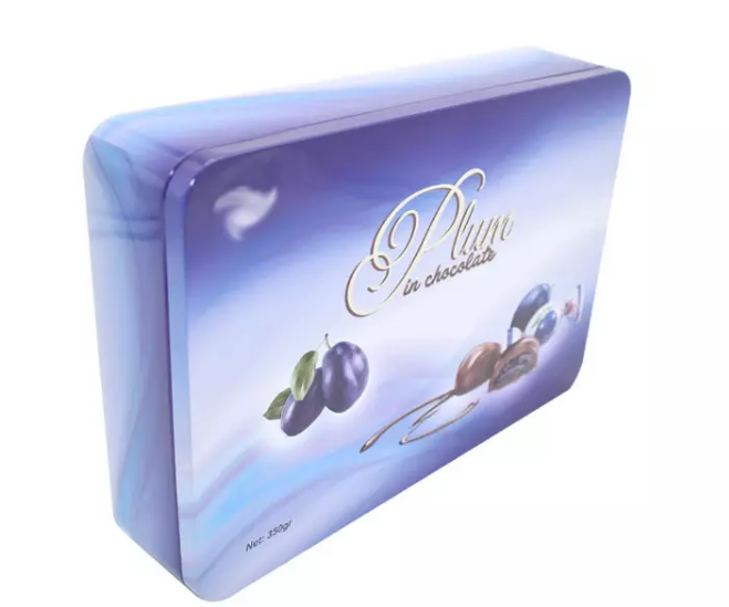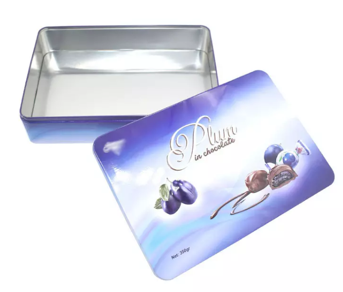Food Grade Custom Designed Personalized Rectangle Metal Tin Can 350g Chocolate Packing Tin Container